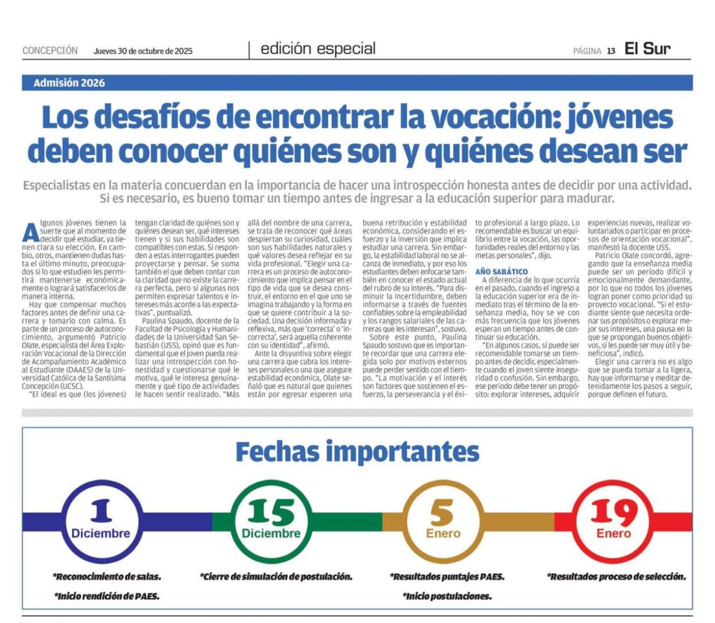 Los Desafíos de encontrar la vocación: jóvenes deben conocer quiénes son y quiénes desean ser (Diario El Sur)